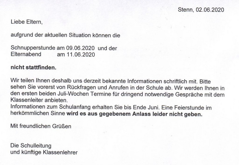 Ich wünsche dem Kollegium der Grundschule Stenn, den Eltern und Großeltern und natürlich allen Schulanfängerinnen und Schulanfängern morgen eine tolle Einschulungsveranstaltung!