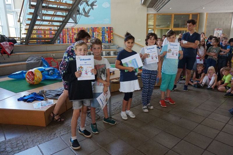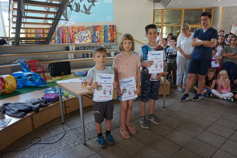Im Mai 2018 wurden die besten Mathematiker der 1. bis 4. Klassen zur Schulmathematikolympiade nominiert. Am 6. Juni erfolgte nun die Auswertung. Über 60 Kinder nahmen am Känguruwettstreit teil und die weitesten Sprünge absolvierten Charlotte und Antonia aus der Klasse 4c. Bester Rechner der Schule jedoch war Willhelm.