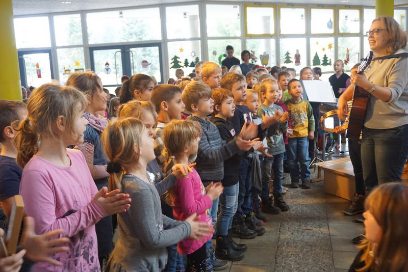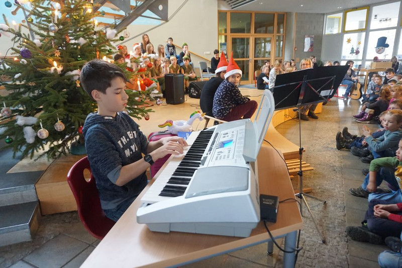 Traditionell versammeln sich am letzten Schultag alle Schüler im Foyer unserer Schule, um gemeinsam das Jahr ausklingen zu lassen. Klassenstufenweise haben sich die Kinder mit Weihnachtsliedern auf diesesn Höhepunkt vorbereitet. Dieses Jahr überraschte uns die Klasse 4c mit einem Weihnachtsstück "Der Weihnachtsmann macht Urlaub". Allen hat das Theaterstück sehr gut gefallen. Mit einem gemeinsamen Lied endete das Weihnachtssingen. Alle Schüler und Lehrer verabschiedeten sich in die wohlverdienten Ferien.