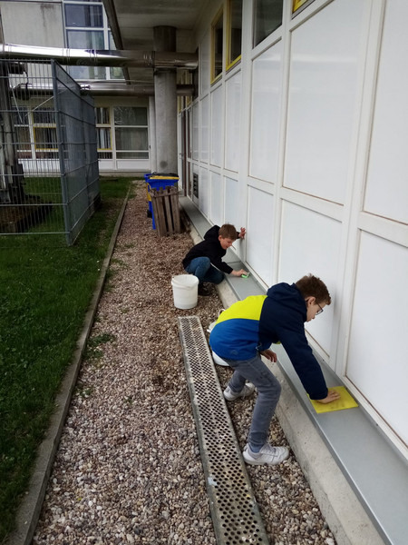 An der Schule wurden die Fensterbänke gesäubert und ebenfalls Müll aufgelesen.