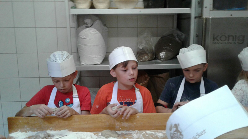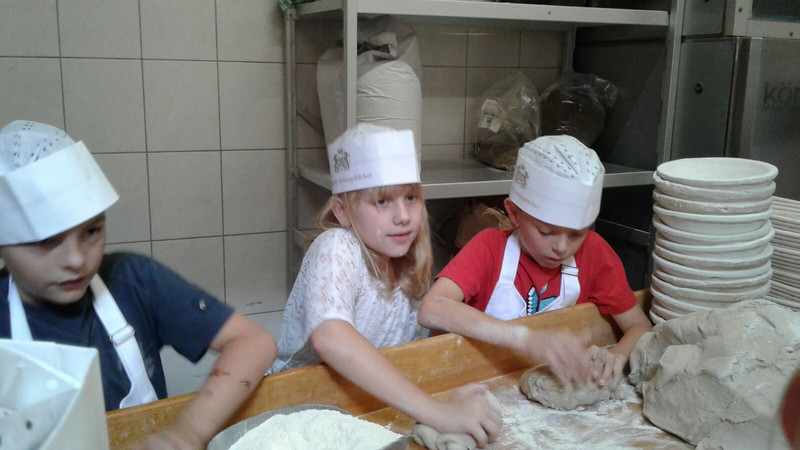 Vom Korn zum Brot Vom Korn zum Brot Im Rahmen des Sachunterrichtes besuchten die Schüler die Croissanterie Frieder Franke und durften Brot selbst backen.