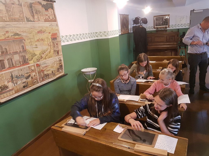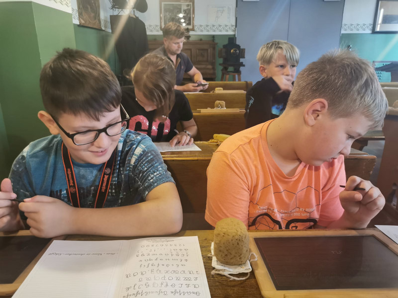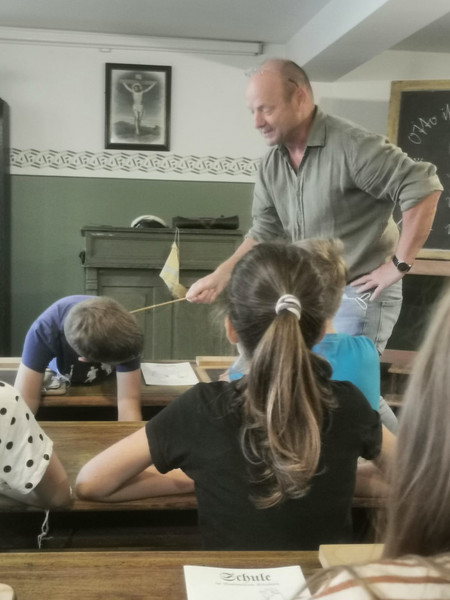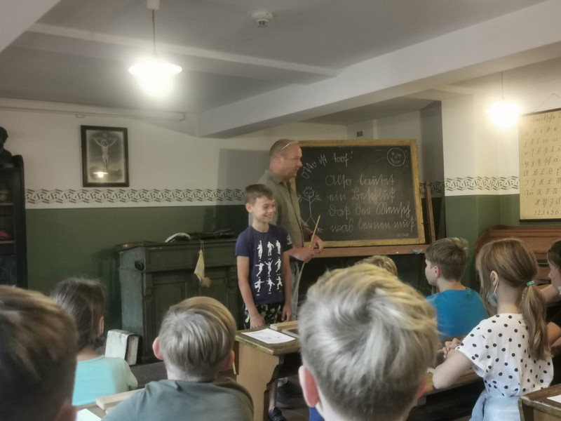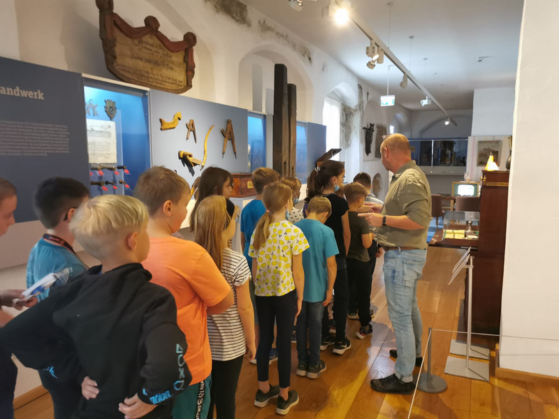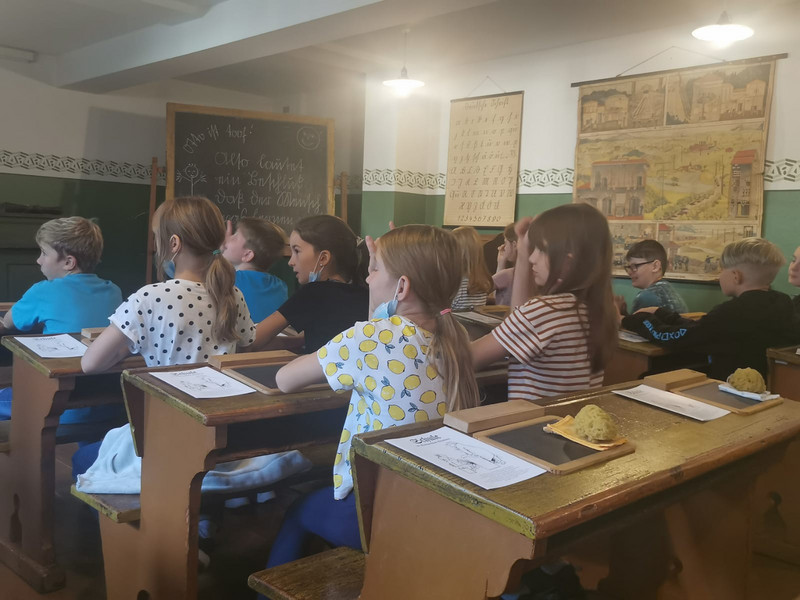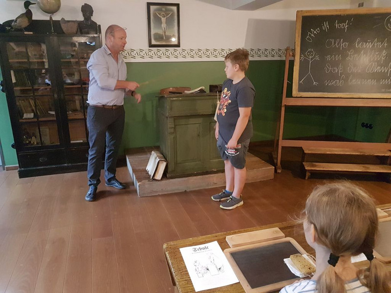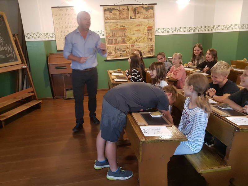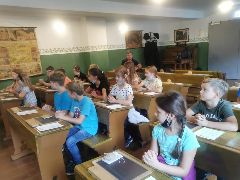 Am 15. und 16. September fuhren die 4. Klassen zur Exkursion nach Eilenburg. Zunächst stand der Besuch des Schulmuseums auf dem Plan. Alle Kinder erlebten eine Schulstunde wie vor 100 Jahren. Mit straffer Lehrerführung, Rohrstock und dem Sitzen in alten Holzbänken wurde den Schülern anschaulich der altmodische Schulalltag erklärt.