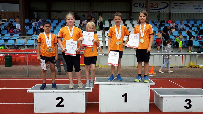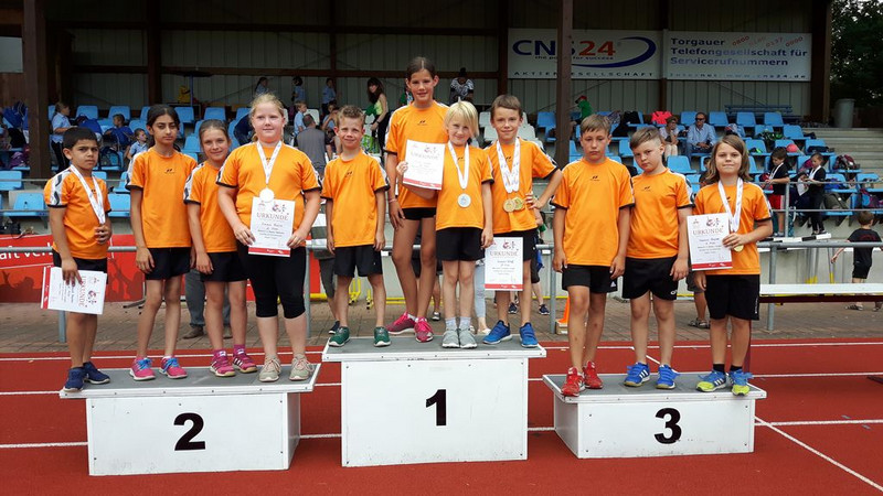 Am 19. Juni 2018 trafen sich alle 11 Grundschulen des Altkreises Torgau im Hafenstadion, um die besten Leichtathleten zu ermitteln. Zunächst erfolgte eine gemeinsame Erwärmung und dann ging es an die Stationen Weitsprung, Ballweitwurf und 50m Lauf. Bei der Pendelstaffel verloren unsere Kinder leider den Staffelstab, sodass wir auf den undankbaren 4. Platz rutschten und uns nicht für das Finale qualifizierten. Am Ende erfolgte die Siegerehrung, bei der unsere Sportler insgesamt 9 Medaillen gewannen. Herzlichen Glückwunsch!
