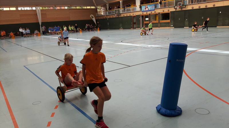 Am 1. November 18 trafen sich 5 Grundschulen Torgaus, um in verschiedenen Staffelwettbewerben ihre Kräfte zu messen. Die von der Unfallkasse Sachsen organisierte Veranstaltung traf den Geschmack aller Kinder und Lehrer. Es ging vor allem um Schnelligkeit, jedoch auch um Geschicklichkeit und Kraft. Obwohl wir nur den 4. Platz belegten, hat es allen Kindern viel Freude bereitet.