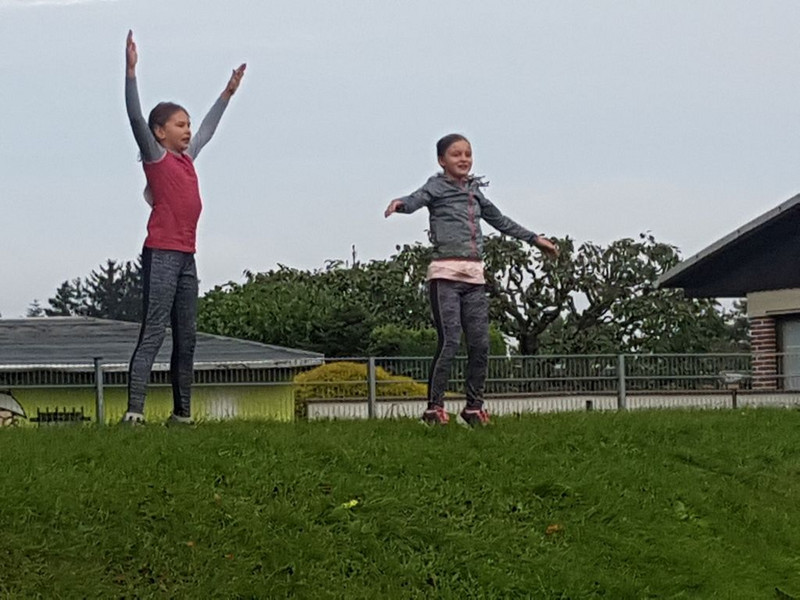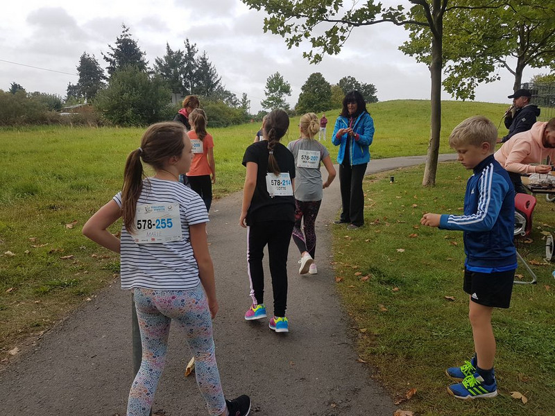 4 Mädchen der Klasse 4b hatten sich super darauf vorbereitet. Dann begannen die 4. Klassen mit dem Sponsorenlauf. Carlo, Collin und Jailan liefen sagenhafte 27 Runden in einer Stunde um den Rodelberg. Eine Runde beträgt 400m. Sogar ein Papa lief fleißig sowohl bei den 4. als auch anschließend bei den 1. Klassen mit. Auch von den 2. und 3. Klassen kamen super Laufergebnisse. Das Geld geht zum Förderverein, der für die Kinder Sonnenschirme mit Ständer besorgen will.