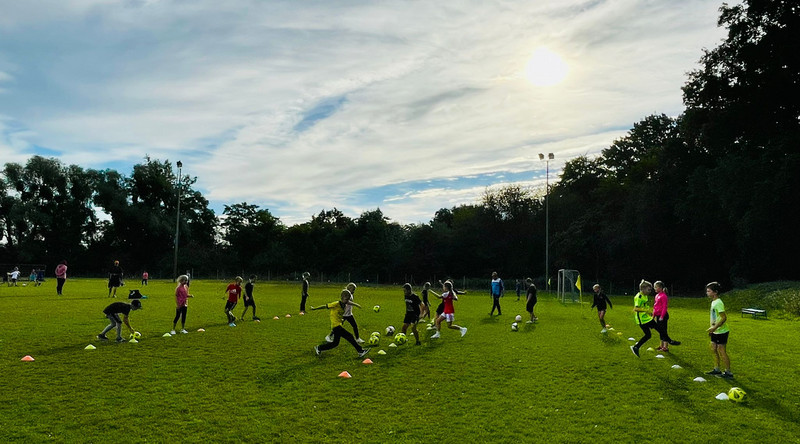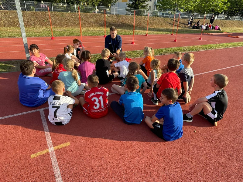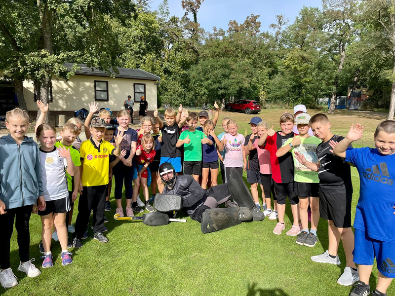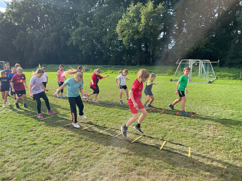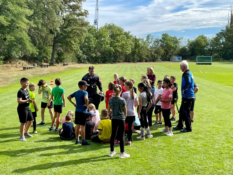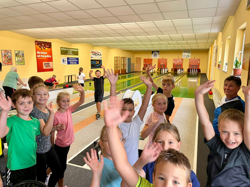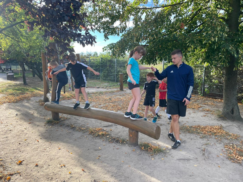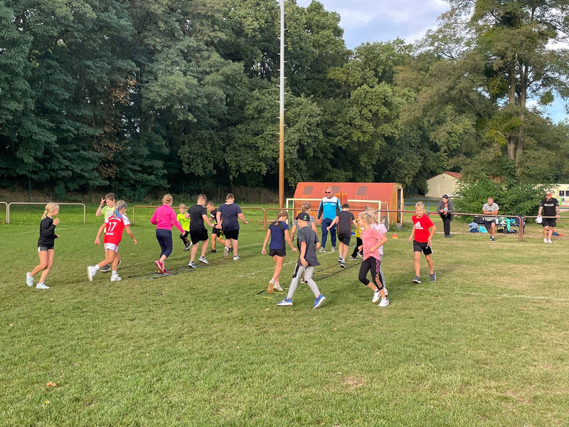 Die 3. und 4. Klassen liefen zum Fußballtraining ins Hartenfelsstadion bzw. zum Hockeyplatz und auf die Kegelbahn des SSV 1952 Torgau e.V.