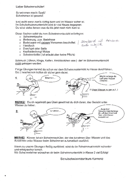 - Es findet eine Doppelstunde Schwimmunterricht in der Schwimmhalle Kamenz statt.