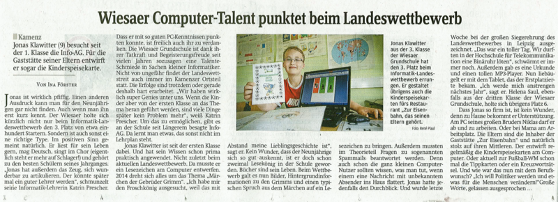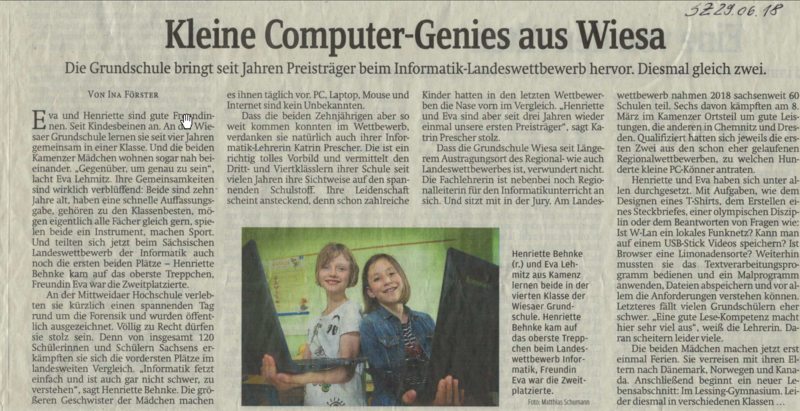 Die Schüler der Computer AG der Grundschule unter Leitung von Frau Prescher beteiligen sich seit 2005 am Sächsischen Informatikwettbewerb. Mehrfach belegten Schüler der Computer AG vordere Plätze in der Kategorie "Grundschulen".