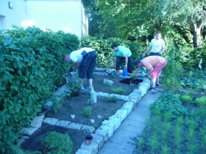 Am 21. Juni 2013 haben wir in der Zeit von 16:30 - 20:00 Uhr zusammen mit engagierten Schülern, Eltern und Lehrerinnen einen Kräutergarten im Schulgarten errichtet. Wir haben einen schönen Platz im Schulgarten gefunden und diesen wunderbar mit den mitgebrachten als auch von Rolf Ziesche gesponserten Steinen verziert.
