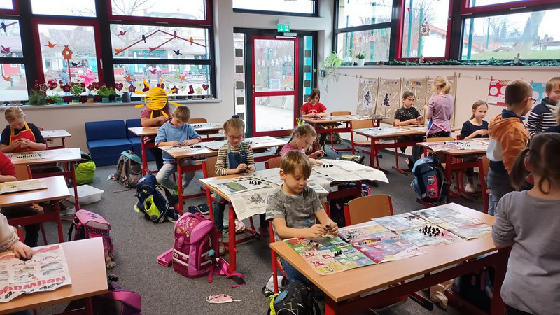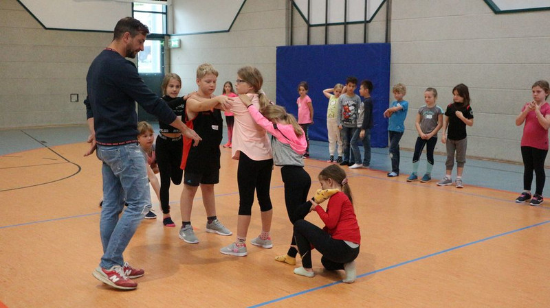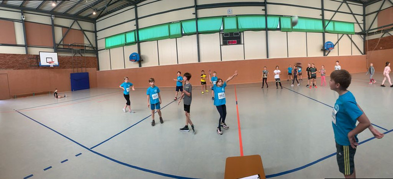 Die Klasse 1 nutzte dazu einen Bewegungszirkel mit Tierbildern. Bei jedem Bild musste die Fortbewegung des jeweiligen Tiers imitiert werden. Zwischen den verschiedenen Bewegungsformen liefen die Kinder zusätzlich Runden in der Turnhalle. Die Wiederbelebung alter, teils fast vergessener Kreisspiele stand in Klasse 2 im Fokus. So konnten die Kinder mit Spielen wie „Faules Ei“ oder „Laurentia“ gleichzeitig Anregungen für die Hofpausen sammeln. In den Klassenstufen 3 und 4 wurde im Turniermodus gespielt. Die 3. Klassen ermittelten in „Ball über die Leine“ den Sieger auf Klassenstufenebene, wobei sich die Klasse 3b durchsetzte. In der Jahrgangsstufe 4 kürte man - mittlerweile fast traditionell - im Zweifelderballturnier die Klasse 4c zum Sieger. Mit viel Spaß und Freude bei den sportlichen Ertüchtigungen fand auch der diesjährige Schulsporttag wieder großen Anklang bei allen Schülerinnen und Schülern, ebenso wie bei den Lehrkräften.