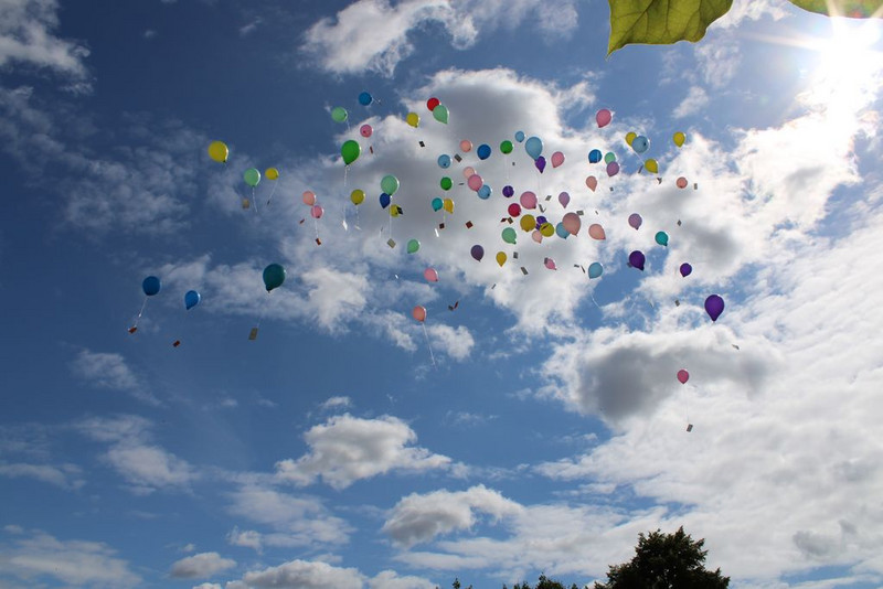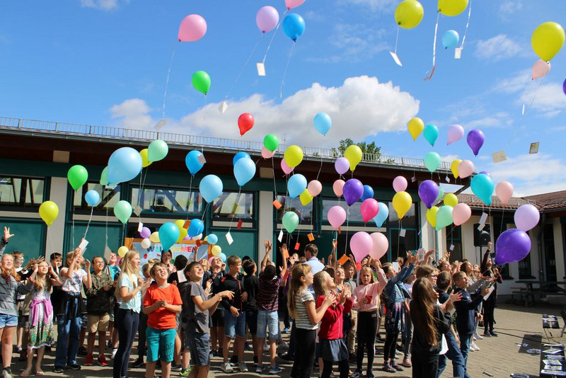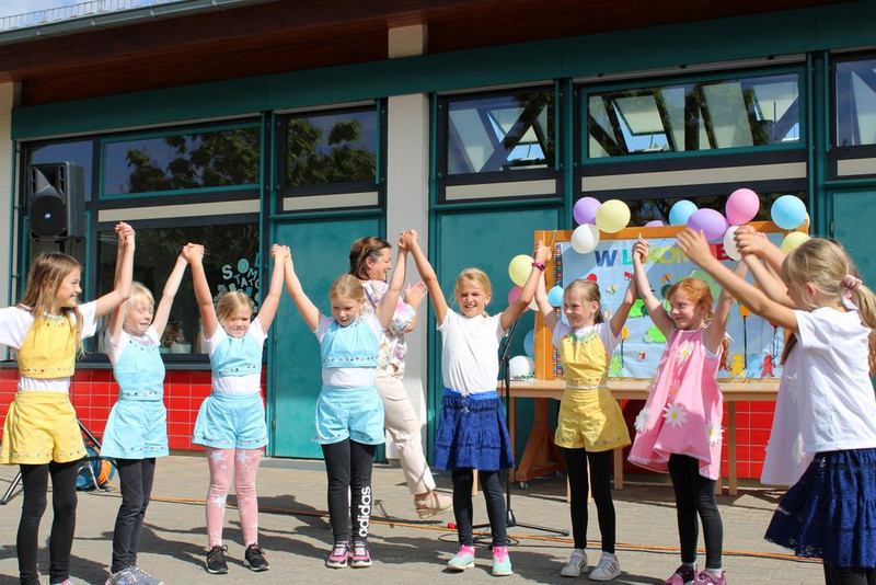 Der krönende Abschluss war am Freitag von 15 bis 18 Uhr das Schulfest. Auftakt bildete ein Programm, gestaltet durch Schüler_innen und Ehrengäste. Nachdem das Schullied von Lehrer_innen, Erzieher_innen und Kindern zusammen gesungen wurde, war das Schulfest durch den Aufstieg von 20 Luftballons offiziell eröffnet.