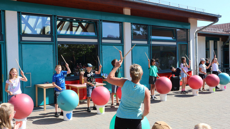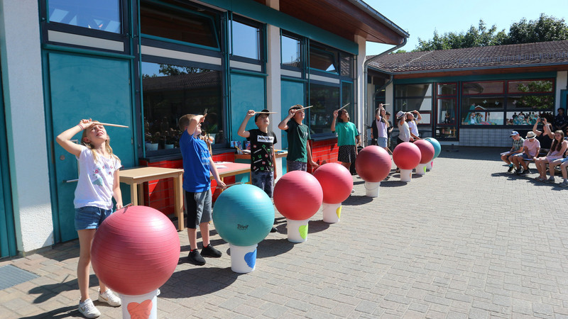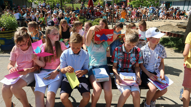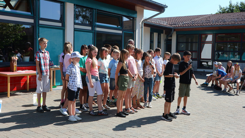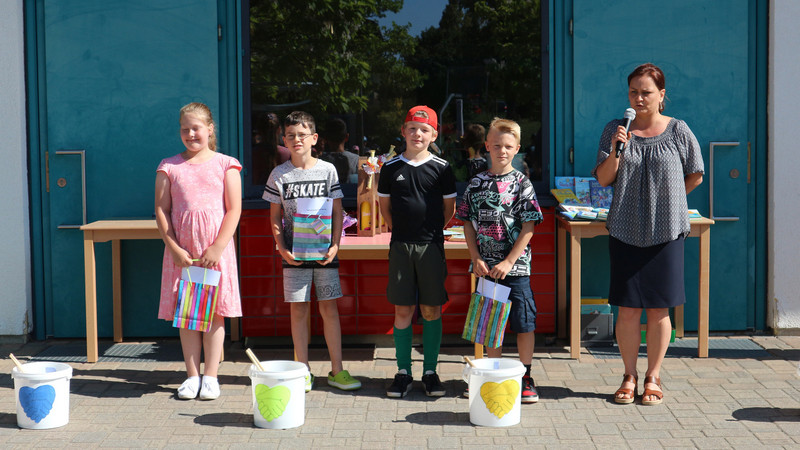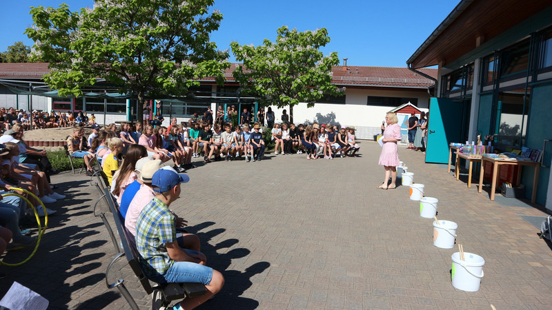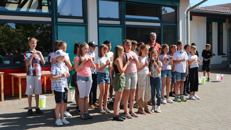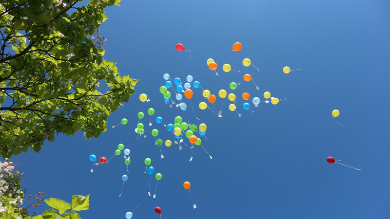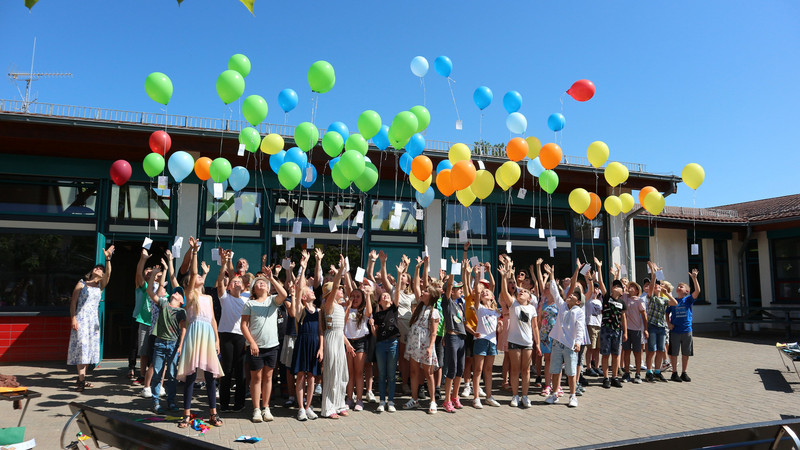 Unsere Viertklässler wurden heute feierlich verabschiedet und bunte Ballons flogen mit liebevollen Grüßen und Wünschen in den blauen Sonnenhimmel.