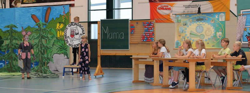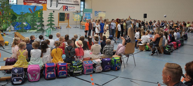 Am Samstag, den 27.08. war es endlich wieder soweit. Aufgeregte und neugierige Kinderaugen von den angehenden Schulanfängern standen mit ihren, wahrscheinlich ebenso aufgeregten, Klassenlehrerinnen vor der Dreifeldhalle und warteten auf den Beginn ihrer Feierstunde. Auch wenn an diesem besonderen Tag das Wetter nicht wie erhofft mitspielte, waren alle froh, dass die Schuleinführungen der Klassen 1a, b und c wieder gemeinsam durchgeführt werden konnten. Doch nicht nur die Kinder, auch die neue Schulleiterin der Grundschule Frau Wilbers erlebte ihren „ersten“ Schultag in Wilsdruff. Im Anschluss eines wunderbar gelungenen Programmes der jetzigen 4t-Klässler bekamen die stolzen ABC-Schützen ihre Zuckertüten überreicht. Nach ermutigenden Worten an SchülerInnen und Eltern durch unseren Bürgermeister Herrn Rother, durften die neuen ErstklässlerInnen, mit Ranzen und Zuckertüte bepackt, von den Eltern in Empfang genommen werden. Es bestand danach die Möglichkeit sich die Klassenzimmer und das Schulhaus anzuschauen. Ein großes Dankeschön geht an Hr. Federowski, die Schulsekretärin, den Hausmeister und den Hallenwart für die große Unterstützung an diesem Tag. Wir hoffen, dass alle Erstklässler einen wunderbar aufregenden Tag erleben konnten und nun fleißig und erfolgreich wie das Mäuschen aus dem Programm "Buchstaben und Zahlen" an unserer Grundschule lernen werden.