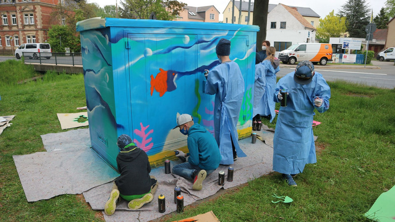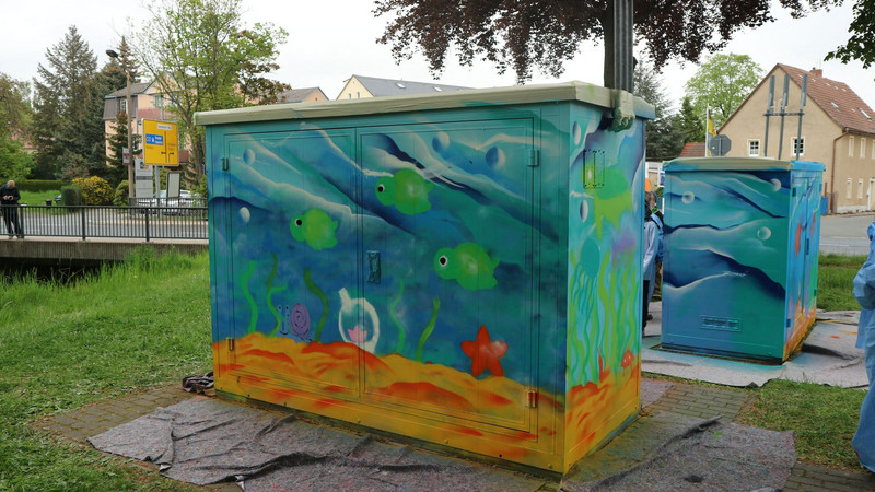 Die von der Stadt Wilsdruff freigegebenen Objekte wurden unter Anleitung des Künstlers mit großer Begeisterung und Kreativität farbenfroh gestaltet. Wir erhielten durch „Rudi“ wichtige Informationen über Geschichte und die komplizierte Rechtslage der Straßenkunst. In den drei zur Verfügung stehenden Tagen sind Kunstwerke entstanden, die hoffentlich das Interesse der Wilsdruffer und ihrer Gäste wecken und die Bilder könnten bei deren Anblick den Menschen auch ein Lächeln ins Gesicht zaubern.
