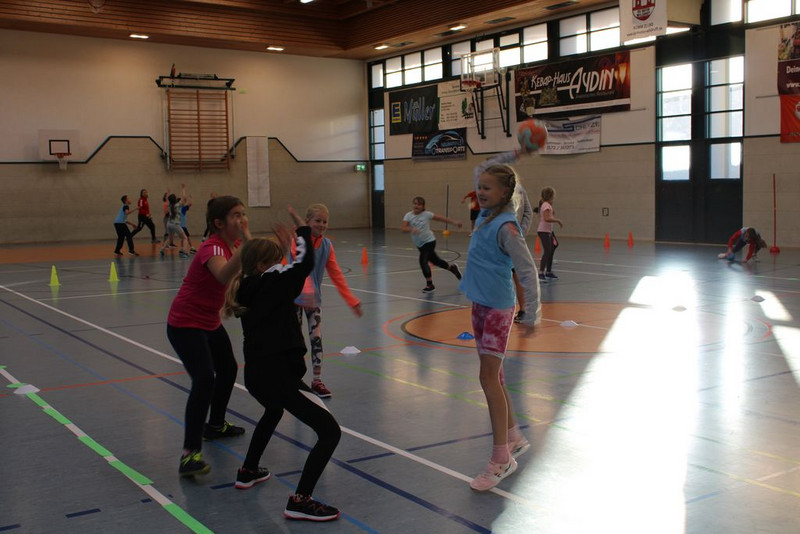 Angeregt wurde dieser Grundschul-Aktionstag von Frau Theil, die mit viel Engagement bereits vielen Schülerinnen und Schülern in unserer Schule den Vereins- und Mannschaftssport Handball nahebringt.