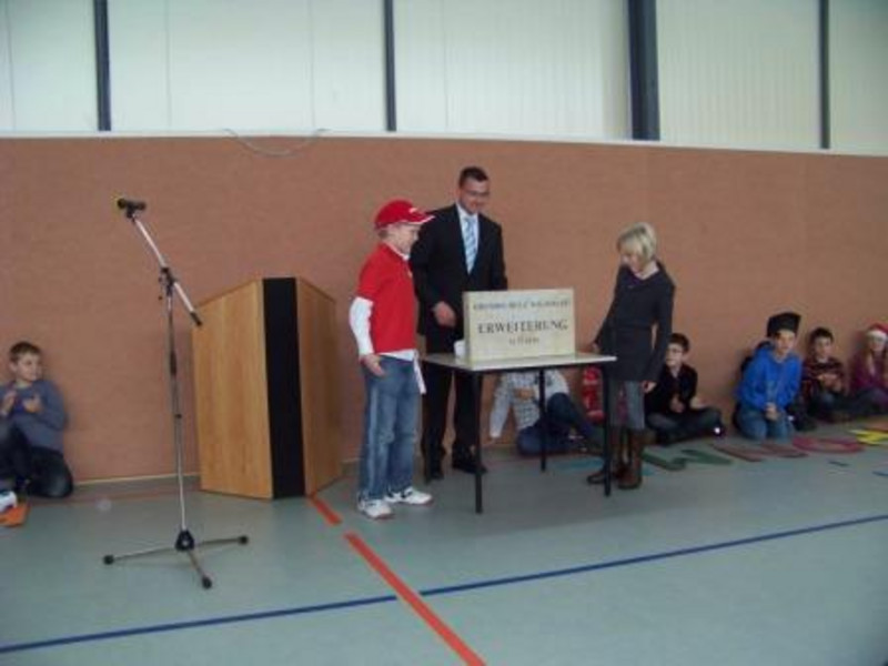 Die Schule hat einen großzügigen Mehrzweckbereich, in dem auch Schulfeiern durchgeführt werden können. Für Großveranstaltungen, wie z.B. Schuleinführungen, Wettkämpfe, können wir die benachbarte "Saubachtalhalle" nutzen,
