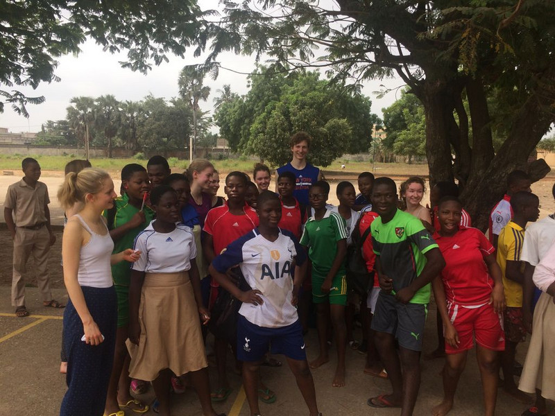 Auf den Straßen herrscht jetzt zur Abendzeit reges Begängnis. Mofas und Wagen drängeln sich durch die schmalen Gassen und man ist meist nur Millimeter von dem anderen Gefährt entfernt. Aber die Togoer sehen es gelassen. Zum Abendbrot, sind wir bei Einheimischen eingeladen. Es ist bereits dunkel, als wir den beleuchteten Innenhof von Salifa und ihrer großen Familie betreten und sofort werden wir herzlichst begrüßt, als wären wir lange vermisste Freunde. Wir kommen überhaupt nicht hinterher uns zu bedanken, für all die überschwängliche Gastfreundschaft, mit der wir in die lebhafte Familie aufgenommen werden. Uns wird ein Essen aus einem Maisbreiklos und verschiedenen Soßen mit Fisch oder Fleisch angeboten. Dazu gibt es selbstgemachten, sehr süßen Hibiskussaft. All das wird mit der bloßen Hand gegessen, die vorher in einer besonderen Prozedur gewaschen wird. Diese Essensform, ist eine willkommene Abwechslung, die von unseren Eltern in Deutschland meist nicht geduldet wird. Den Tanzabend, zu afrikanischen Hip-Hop Klängen, eröffnen die Kinder und wir werden bald angesteckt von dem Rhythmusgefühl. Unser Programm für den Kulturabend findet bereits bei der Generalprobe große Bewunderung und Freude. Abgeschlossen wird der wilde Tanzabend auf dem staubigen Boden des Innenhofs, mit Frau Hannemanns „throw, catch“. Alle sind dabei und hell auf begeistert. Noch lange danach sind wir von der Lebensfreude und Aufgeschlossenheit aller fasziniert. Noch ein Tag wartet auf uns hier in Lomé, voll mit einem weiteren großen Programm. Bis bald!