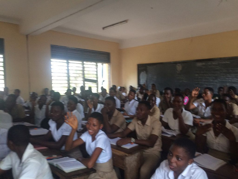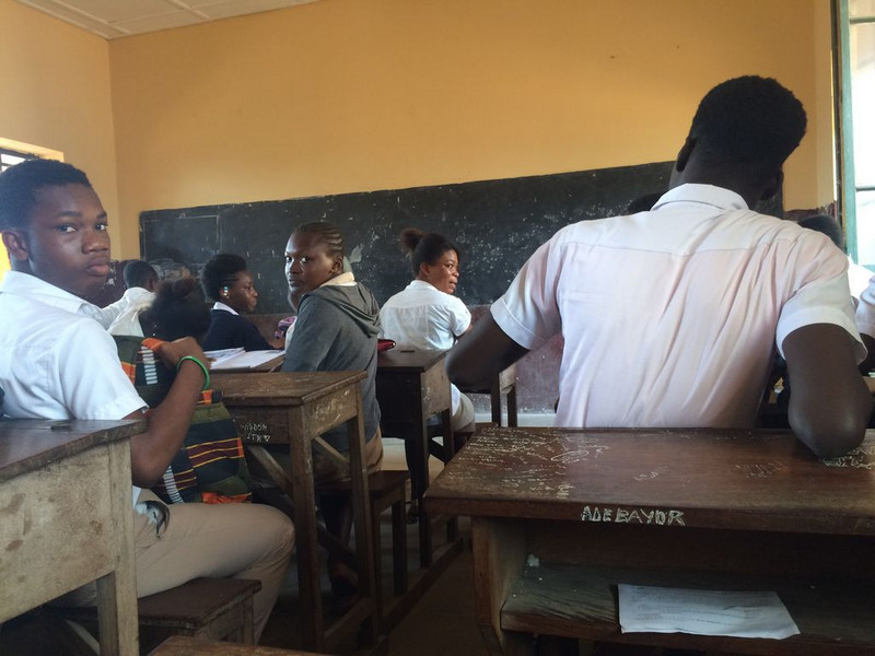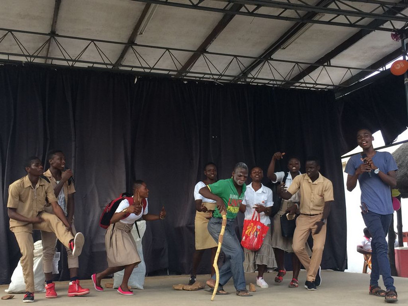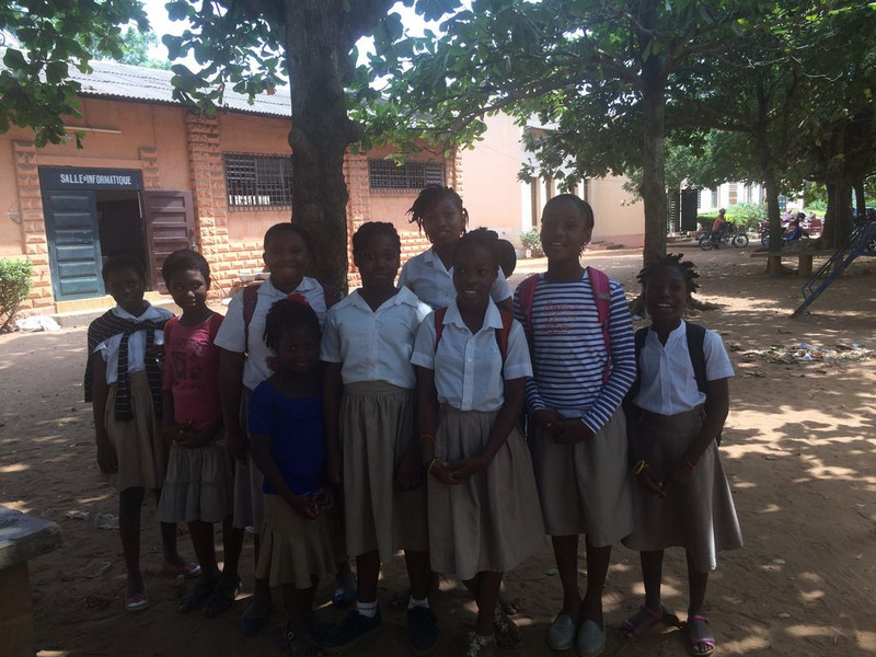 Nach einer unruhigen Nacht werden wir von den Vögeln in den Mangobäumen im Innenhof geweckt. Wir müssen schon früh raus, denn wir besuchen eine weitere Schule, dass lyceé 2 fevrièr. Im Gegensatz zur gestrigen Schule ist diese eine staatliche. Die Unterschiede kann man schon beim Betreten des weitläufigen Schulgeländes erkennen. Wo in der Privaten, die Schüler mit Mopeds kommen, stehen hier alte Fahrräder rum, die Schuluniformen jedoch sind gleich. Beiger Rock und weiße Blusen, für die Mädchen. Doch uns fällt auch bald auf, dass hier an der Schule jedes kurzgeschorene Haaren hat, um sich nicht von den anderen durch etwas Besonderes hervorzuheben, wie uns sogleich erklärt wird. Für uns, die stolz auf die langen Haare sind, unvorstellbar. Bei über 30 Grad, nehmen wir mit 75 Jugendlichen am Sportunterricht teil. Wir rennen mit bloßen Füßen über den steinigen, heißen Sand, dehnen uns oder lenken die Schüler durch interessierte Gespräche vom Unterricht ab. Darüber ist aber niemand außer dem Sportlehrer besonders böse, denn bei diesen Temperaturen hat niemand eine große Kondition. Im Anschluss, nach 55 min. werden Unmengen an Fotos von uns gemacht, als wären wir eine seltene Tierspezies. Wir werden von einer fotowütigen Gruppe zur nächsten gezogen und begeistert Nummern und E-Mail-Adressen ausgetauscht. Bereits hier wird über WhatsApp mit den neugewonnen Kontakten geschrieben. Es wird uns noch häufiger so ergehen, wie wir an diesem Tag feststellen sollen. Die Schüler auf der staatlichen Schule, strahlen eine unglaubliche Wärme und Offenheit aus, mit der sie uns herzlich in ihren Klassen empfangen. Beim Fragen stellen sind sie noch eher verhalten, beschränken sich auf die Floskeln „ca va?“, häufiger werden die Namen und das Alter erfragt und natürlich wo wir her kommen, doch Dresden und selbst Berlin sagt hier den wenigsten etwas. Die Verständigung erfolgt meist auf Deutsch, denn mit unserem Schulfranzösisch kommen wir hier, bei den starken Akzent leider nicht allzu weit. Außerdem sprechen die Schüler, obwohl erst seit weniger Zeit, bereits fast fließend unsere Sprache und das voller Stolz und Begeisterung. Im Deutschunterricht werden wir in die engen Bänke zu 69 weiteren Kindern gequetscht, die für uns lauthals selbstgedichtete Begrüßungslieder singen und sie sind sehr enttäuscht, als wir dann auch schon bald wieder gehen müssen, denn ein großer Auftritt wartet auf uns. Im Goetheinstitut findet heute der schon lange erwartete Kulturabend mit den besten Deutschclubs aus dem ganzen Land statt. Auch wir dürfen einen Beitrag aufführen, den wir im Voraus schon mit Aufregung vorbereitet hatten. Doch als wir die Auftritte der andern sehen, rutscht uns das Herz in die Hose. Mit riesiger Begeisterung und Enthusiasmus wurden Sketche einstudiert, Tänze und Lieder, die eine Brücke zwischen der deutschen und der lebhaften afrikanischen Kultur schaffen. Zu rhythmischen Trommelklängen tanzen Mädchen und Jungs in bunten Röcken über die kleine Bühne im geschmückten Hof oder stellen theatralisch die Begebenheit des Froschkönigs dar. Wir als deutsche Gruppe von Schülern sollen das Highlight des Abends darstellen. Als wir die Bühne betreten und etwas schüchtern mit dem Kanon beginnen, werden die Handys gezückt. Doch schon bei unserer Choreografie zu Mark Forsters „Chöre“ geht die ganze Masse von Jugendlichen ab und wir vergessen jegliche Bedenken. Den Höhepunkt, bildet das Fliegerlied und die Vereinigung der Deutschclubs tobt.