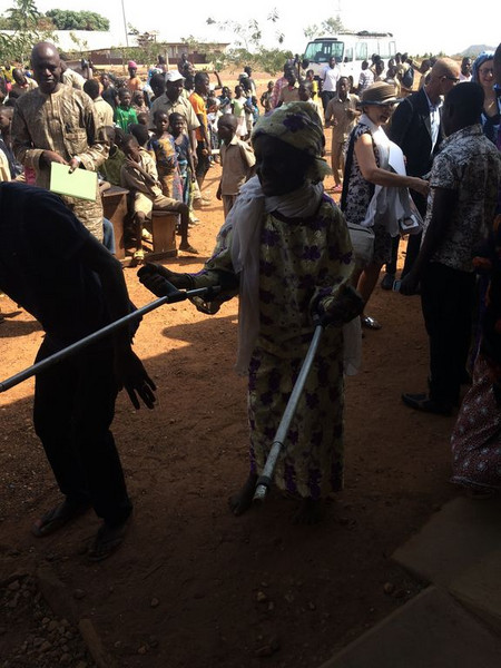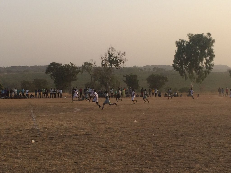 Auch in der zweiten Schule in Koumondé sollen wir uns diese Fragen noch einmal stellen. Werden uns diese Gedanken durch den Kopf gehen. Die Zeremonie ist fast gleich, wieder die wilde, laute Begrüßung, die langen Dankesreden, die feierliche Spendenübergabe. Und danach noch einmal die unangenehme Situation, die Mitbringsel gerecht verteilen zu wollen. Wir stoßen an unsere Grenzen und müssen feststellen, dass es nicht möglich ist. Es wird nie genug für alle da sein. Aber die Frage ist auch, wann ist überhaupt genug? Wann können wir sagen, wir haben genügend getan, alles in unserer Macht stehende? Wohl nie, aber es ist genauso wichtig sich einmal in eine solche Situation zu begeben, sich zu hinterfrage nach alle dem. Abgeschlossen wird der ereignisreiche Tag, mit vielen bewegenden Momenten, in positiver aber leider auch etwas negativer Hinsicht, mit einem Fußballspiel der Schüler aus Koumondé. Unser Ben, der hier übrigens von den Menschen wie ein wandelndes Wunder gefeiert wird, darf auch teilnehmen. In der untergehenden Sonne rennen die Kinder dem Ball über dem staubigen Feld hinterher. Drum herum die johlende Schülerschaft. Es ist schon dunkel, als wir die beiden einfachen Schulhäuser, die auf einem Hügel zwischen den grünen, auch felsigen Bergkuppen liegen, verlassen.