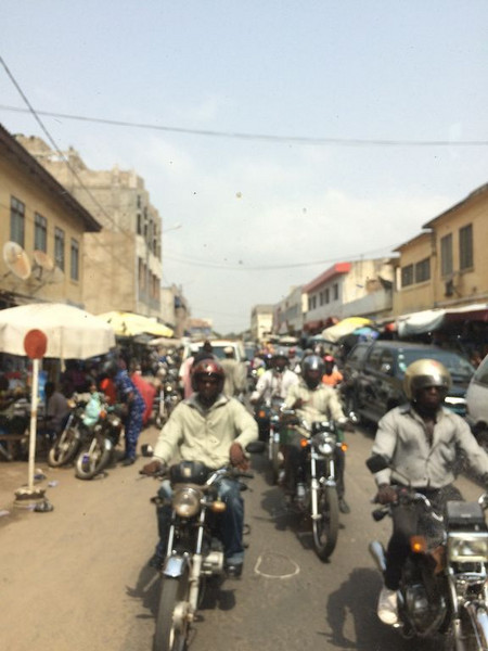 Wir machen uns wieder auf den Weg nach Lomé. 6h fahren wir wieder durch die sich stetig wandelnde Landschaft. Beobachten die Menschen am Wegesrand, die uns zuwinken, verblüfft über weiße Gesichter. Zum Mittag sehen wir die betenden Gläubigen, die zu den unzähligen Moscheen am Wegesrand strömen. Man könnte die ganze Zeit aus dem Fenster schauen und den Fotoapparat gezückt halten, um die Kuriositäten die es alle Meter lang zu bieten hat, fest zu halten. Denn immer wieder sehen wir Autos, vollgestopft mit Menschen, die der TÜV vermutlich nicht mal einen Meter hätte die buckelige Straße befahren lassen, die die einzige ist zwischen Kara und Lomé. Oder auch die Mopeds, die zu ganz neuen Zwecken benutzt werden und immer wieder den Herden von wild herumirrenden, dümmlich wirkenden Laufhühnern ausweichen müssen. Es fallen uns ständig neue Dinge auf, von denen wir in Deutschland berichten wollen, die wir so noch nie in unserem geregelten, kontrollierten Land erlebt haben. Die Woche neigt sich dem Ende zu und die Erinnerungen werden immer mehr und an der Speicherkapazität des Fotos und unserer Köpfe merken wir, dass es bald Zeit für uns ist heimzukehren. Die Erfahrungen zu verarbeiten und zu teilen. Gleichzeitig könnten wir unzählige Dinge aufzählen, die uns fehlen werden. Allein schon die Wärme, die wir erst in einigen Monaten wieder um uns haben werden. Zwischendurch noch einen kurzen Halt an der Wahala, einer Gedenkstätte für gefallene deutsche und togoische Soldaten im 1. Weltkrieg. Ein blütenweißes Grab und gutbestückte Infotafeln. Die Ordnung, auf die hier Wert gelegt wurde, weist auf den Ernst und die Wichtigkeit dieses Themas für das Land hin, welches einst einmal deutsche Kolonie war. Doch so sauber, wie es auf dem kleinen Grababschnitt ist, sehen wir es in ganz Togo nur beim deutschen Botschafter im Garten, bei dem wir heute Abend noch eingeladen werden. Auf den Straßen der Stadt und den Feldern am Wegesrand, liegt der Müll meist wie Laub, als bunte Fetzen auf dem grauen Staub. Es ist ein großes Problem des Landes, welches viel tiefer sitzt, als wir anfangs glauben. Es ist nicht nur die Mülltrennung die hier fehlt. Mülltonnen sieht man selten und es ist für die Menschen ganz natürlich ihre Abfälle einfach dort fallen zu lassen, wo sie entstehen. So fliegen vor allem die kleinen Plastebeutel der Trinkpäckchen vorbei, von denen uns erst abgeraten wird, als wir sie bereits getrunken haben. Schon lange im Voraus, hatten wir uns auf diese seltsame Art des Trinkens gefreut, doch wir müssen feststellen, dass es mehr nach Flüssigkeit mit Plastik schmeckt, als nach etwas Trinkbarem und auch unseren, sowieso etwas sensiblen Mägen, verhilft es nicht gerade zur Besserung. Es vergeht kein Tag, an dem es nicht einem von uns mit der nun schon bekannten, allgemein fiesen „Scheißerei“ erwischt, aber es gibt genügend Chemiekeulen aus der guten deutschen Hausapotheke, die wir in diesen Tagen zu schätzen lernen und schon nach wenigen Stunden sind die Kranken wieder auferstanden und saugen die auf uns einströmenden neuen Einflüsse in sich auf.
