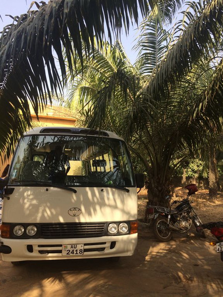 Noch ist die Hitze in Lomé erträglich, denn man hat sich so langsam daran gewöhnt, so wie man sich an den unglaublich lauten Straßenlärm gewöhnt hat. Doch es soll noch heißer werden im Norden, nochmal um die 8 Grad mehr, denn dort fehlt das feuchte Seeklima. Nach dem unser Gepäck auf dem Dach des Busses verstaut ist geht es auf die insgesamt 6 h Autofahrt. Schon nach kurzer Zeit verwandelt sich die Vegetation am Straßenrand deutlich. Wo einst Häuser aus Beton standen und viele Autos auf den nur teilweise befestigten Straßen führen, wachsen jetzt Palmen und Gräser. Doch wir fahren auch immer wieder an schäbigen, staubigen Hüttchen mit Außenfeuerstelle vorbei, begegnen winkenden Menschen, die erstaunt sind über einen solchen Anblick, den wir bieten. Immer wieder fahren wir haarscharf an anderen, bis in den Himmel beladenen LKWs vorbei und zittern so manches Mal beinahe um unser Leben. Dass immer wieder ein umgekippter Lastwagen samt Ladung im Straßengraben liegt, macht uns nicht gerade mehr Mut. In dem klimatisierten Bus, bekommt man nicht viel von der drückenden Hitze in der oft auch trockenen, verbrannten Steppe, mit. Nur bei den Pinkelpausen spüren wir, wie enorm sich ein Temperaturunterschied von wenigen Grad, bemerkbar macht. Ich muss immer wieder an eine 24h Sauna denken, denn ordentlich schwitzen ist hier garantiert. Nach 5 h kommen wir in Sokodé an. Dort besuchen wir eine Schule, an der Eva Hamann und auch Ruprecht Tauchmann (ein ehemaliger Schüler unseres Gymnasiums) bereits war. Es ist wieder eine staatliche Schule und der Schulhof ist groß und staubig, es gibt wenige Schattengelegenheiten und wir bemitleiden die Schüler und auch uns selbst, dass wir nun noch bis um 17.00 Uhr am Unterricht teilnehmen müssen. Dieses Mal Französisch. Wenn wir an unseren Schulalltag denken, fallen uns sofort die großen Unterschiede auf. Hier haben die Schüler 2h Mittagspause, dafür aber meistens bis zum späten Nachmittag. Die Schulstunden sind mit 50 Minuten ebenfalls länger und es gibt keine Pause. Ja da trinken ist geradezu verboten, und dass bei fast 40 Grad! Als wir dieses Mal die wieder vollgestopfte Klasse betreten, werden wir eher verhalten begrüßt und wir dürfen hinten im Klassenraum Platz nehmen, wo wir auch für den Rest der Stunde gelassen werden. Aus den Fetzen die wir verstehen, bekommen wir mit, dass die Schüler ein Thema erörtern und ihre Motivation etwa genauso hoch ist wie die unsere bei diesem Aufgabenbereich. Doch bei den Zuständen, die hier am Nachmittag in den stickigen Klassenräumen herrschen, ist dies vollkommen verständlich und man erkennt deutlich die Bemühungen der fleißigen Schüler. Obwohl sie zu fast 70 Unterricht haben, sind alle still und konzentriert. Nach dem Unterricht, werden wir dieses Mal ohne großes Aufheben verabschiedet und wir fahren noch einmal eine Stunde nach Kara, wo wir für die nächsten beiden Nächte übernachten werden.