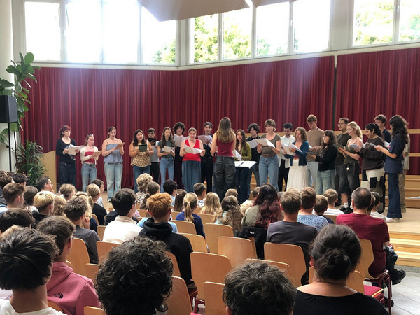 Mehr als 200 interessierte Schüler, Schülerinnen und Lehrkräfte fanden sich dafür in der Aula ein und lauschten den Werken von Bach, Byrd und Britten. Tosender Applaus ließ keinen Zweifel daran, dass der Auftritt dem Publikum sehr gut gefallen hatte.