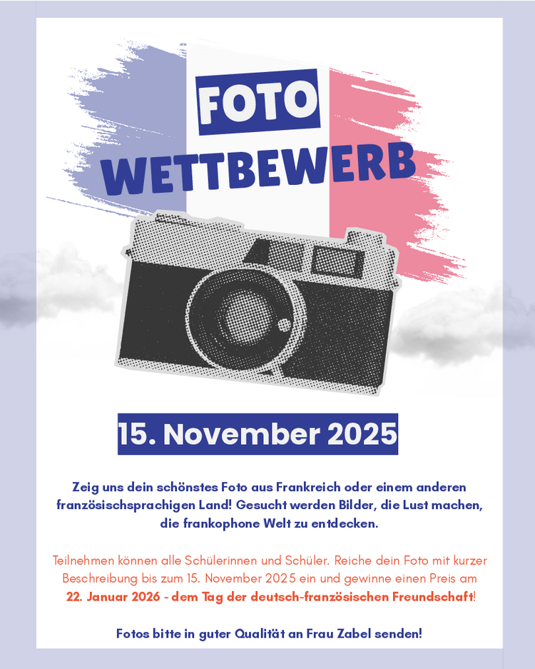 Am 28.3.2025 hat der Vorlesewettbewerb der Klassenstufe 7 in Französisch stattgefunden. Dazu durften aus jeder Französischklasse jeweils drei Schülerinnen und Schüler teilnehmen. Die Schüler durften einen Lehrbuchtext ihrer Wahl auswählen, das Lesen üben und diesen vorlesen. Außerdem mussten sie einen unbekannten Text aus dem Lehrbuch vorlesen.