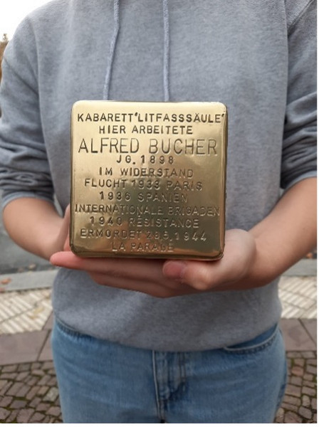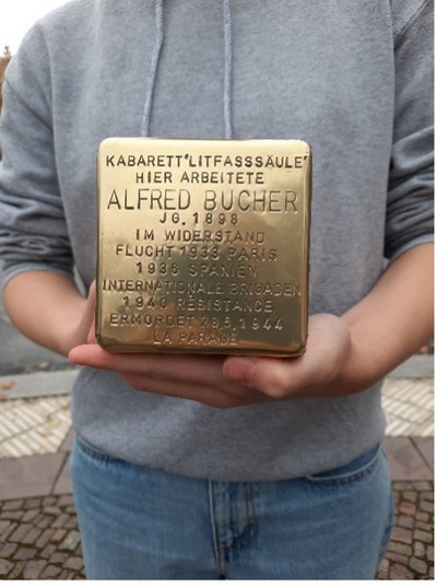 Unsere ehemalige Abiturientin Helena Hummelsheim hat im Rahmen ihrer komplexen Leistung, die sie im Herbst 2024 fertig stellte, eine weitreichende Recherche über den Widerstandskämpfer Alfred Bucher betrieben. Dank ihrer umfassenden Nachforschungen wurde entschieden, dass für besagte Person ein Stolperstein im Leipziger Süden verlegt wird. Am 23.10.2025 war es dann endlich soweit, der Stolperstein für Alfred Bucher wurde am Feinkostgelände an der Karl-Liebknecht-Straße / Ecke Braustraße feierlich verlegt. Helena sprach selbst ein paar Worte und eine Gruppe von ca. 20 Menschen verfolgten die Verlegung gespannt. Wer mehr über Helenas Projekt lesen möchte, kann gerne → hier ← ihren Artikel lesen. Wir sind mächtig stolz auf diese tolle und wichtige Leistung!