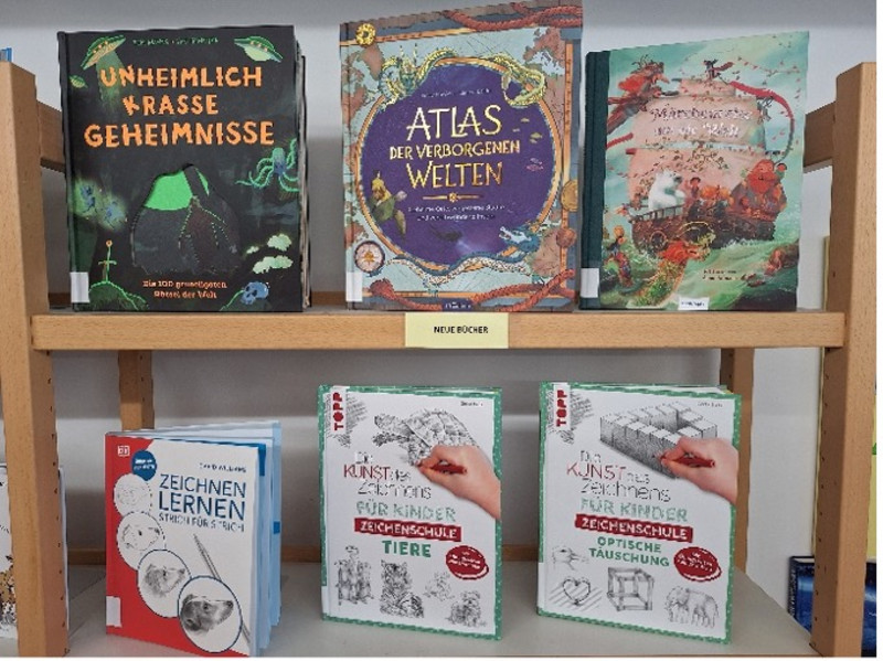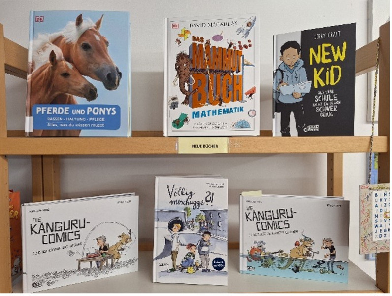 der Bestand an Büchern und Medien ist sehr umfangreich und vielfältig. Es kommen jedes Schuljahr viele neue Bücher in die Schulbibliothek. Schaut euch dazu unten die Fotos an.