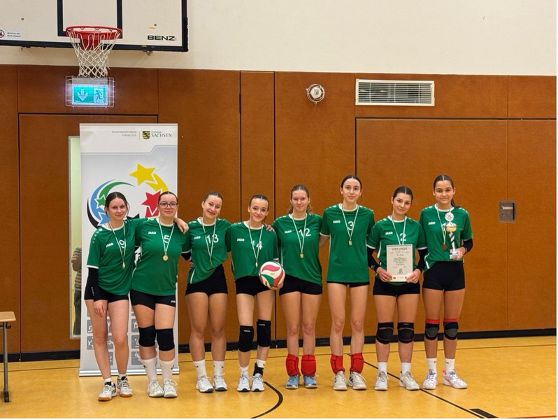 Beim Volleyball-Stadtfinale der WK II Damen konnte sich unser Team am 26.11. zum Stadtmeister küren. Dabei setzte sich unsere Schulauswahl in der Sporthalle der Kurt-Masur-Grundschule eindrucksvoll gegen die Teams des Immanuel-Kant-Gymnasiums, der Schule am Palmengarten, des Ostwaldgymnasiums sowie der Georg-Christoph-Lichtenberg-Schule durch. Die Engelsdorfer Volleyballerinnen gaben nicht nur keinen einzigen Satz ab, sondern gewannen einen Satz sogar spektakulär mit 34:0. Das Team überzeugte mit einem grandiosen Teamgeist. Da der Turniersieg im Vorhinein nicht unbedingt absehbar war, war die Freude über den Erfolg anschließend umso größer.