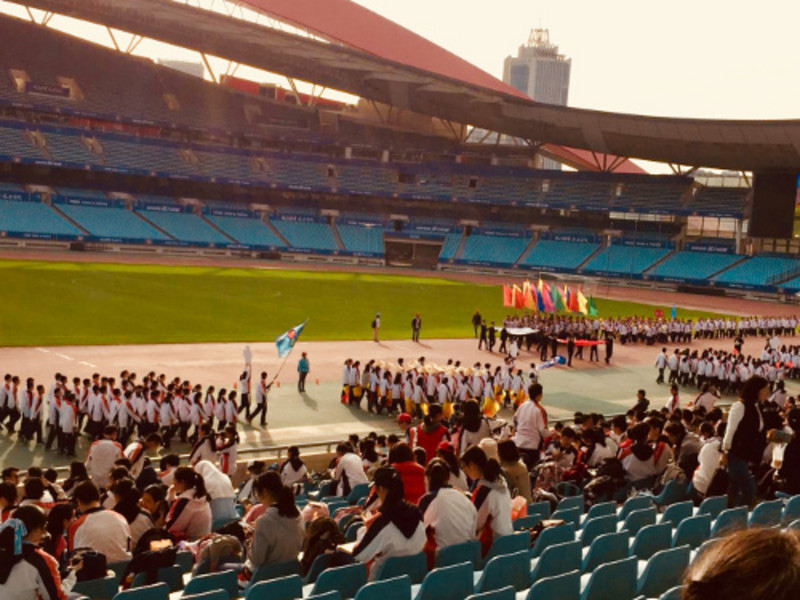 Heute sind wir den zweiten Tag bei unseren Gastfamilien zuhause. Wir haben dort typische chinesische Gerichte probieren dürfen, mit den Kindern der Familien gespielt und versucht, mit ihnen zu kommunizieren. Außerdem waren wir heute von 7:30 Uhr bis 16:30 Uhr auf einem "Sporttag", an dem alle SchülerInnen der NFLS erschienen sind. Da es sich bei der NFLS um sehr viele SchülerInnen handelt, fand dieser Sporttag in einem riesigen Olympiastadion statt. Die Schüler sind zu einem chinesischen Lied einmarschiert und traten bei Disziplinen wie Sprint, Langlauf und Kung-Fu an.