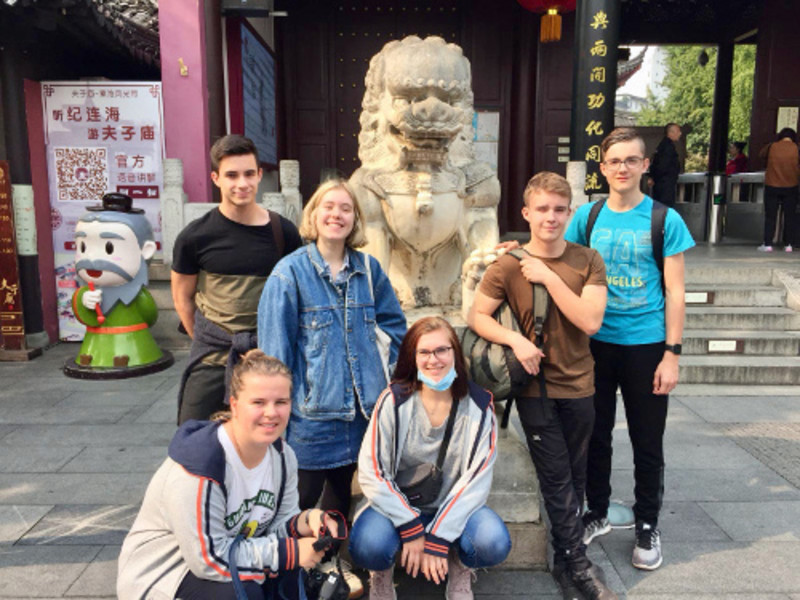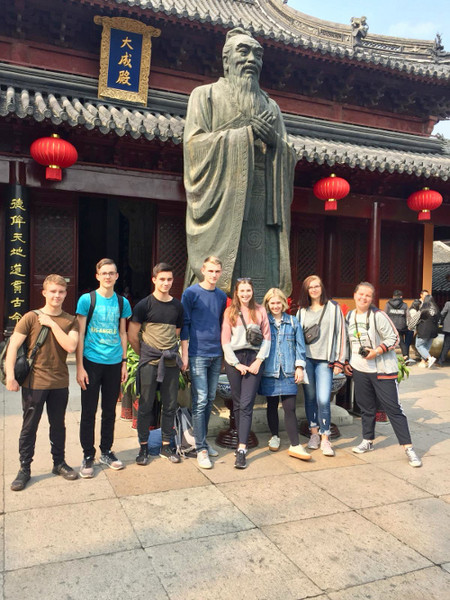 Anders als gestern haben wir heute einen Ausflug gemacht. Zuerst waren wir im Nanjinger Stadtmuseum. Dort haben wir viele alte Gemälde, Skulpturen, Töpfereien und viele andere historische Gegenstände sehen dürfen. Am Nachmittag waren wir bei dem Konfuziustempel und haben diesen besichtigt. Anschließend sind wir durch eine Einkaufsstraße geschlendert. Nachdem wir uns dort mit chinesischen Spezialitäten und Souvenirs eingedeckt haben, sind wir nach Hause gefahren. Dort wartete schon unsere tägliche Portion Reis auf uns. Am Abend saßen wir gemütlich beisammen und haben den Tag widergespiegelt, gesungen und Karten gespielt.