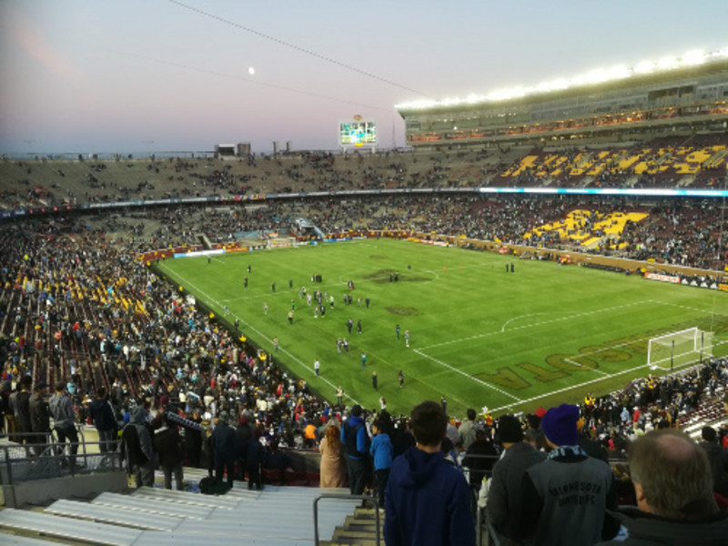 Der Countdown läuft. Heute, an diesem wunderschönen sonnigen Tag, konnte ich noch ein letztes Mal den gesamten Tag mit meiner Gastfamilie verbringen. Der Tag begann mit einem schönen Schlaf bis zum frühen Mittag, sehr sonntagstypisch. Nach einem landestypischen, leckeren und vor allem sehr reichhaltigen Frühstück stand der Tagesplan zur Debatte. Natürlich fällt die Auswahl an einem so wunderbaren Ort wie hier in Minnesota entsprechend schwer, vor allem dann, wenn man weiß, dass sich die schöne Zeit allmählich dem Ende neigt. Wir haben uns für eine Tour zum Wohn- und Sterbehaus des Musikstars Prince entschieden. Nach einer schönen Fahrt durch den Sonnenschein nach Bloomington erreichten wir das "Wohnhaus". Ich dachte zunächst, ich habe mich geirrt und wir seien gar nicht zu Prince gefahren, denn sein Haus erinnerte nicht an die erwartete Riesen-Villa, sondern es war eine unscheinbare Halle mit Anbau. Da sieht man mal, wie schnell Klischees über Stars widerlegt werden können! Das Haus war zu einem Museum umgebaut worden, wir machten eine Führung. Dabei sahen wir u.a. die Konzertkostüme, die Prince einst getragen hat. Beim Anblick fiel mir auf, dass sie nicht der üblichen Kleidergröße entsprachen. Prince war nur 1,60 groß und so sahen dann auch die Kostüme aus. Sonst konnte man seine Wohnräume betrachten und wir warfen zudem einen Blick in sein Tonstudio, in dem er einst an neuen Songs gearbeitet hatte. Songs wie "Purple Rain" haben ihn einst zu einem weltbekannten Star der Musikszene gemacht. Nach diesem Besuch bei Prince ging es zunächst wieder nachhause an den Otter Lake. Um 16 Uhr brachen wir dann auf zum Fußballspiel zwischen dem Minnesota UFC und den Los Angeles Galaxy um Superstar Zlatan Ibrahimovic. Vor offiziellen 52.242 Zuschauern begann das Spiel zunächst rasant mit einigen dicken Chancen für angriffslustige UFC-Spieler. Doch schnell ging das Engagement zum Gegner aus Los Angeles über und der UFC geriet durch ein Traumtor von Ibrahimovic in Führung. Nach der Halbzeitpause fielen sofort in der 51. und der 53. Minuten, nach schwacher Abwehrleistung des UFC 2, weitere Gegentore durch die Mannschaft aus Los Angeles. In der 54. Minute gelang den Spielern des UFC noch ein Ehrentreffer. Insgesamt reichte es zum Saisonabschluss also nur zu einer 1:3-Niederlage für den Minnesota UFC, trotz starker Offensivleistung mit vielen Torschüssen reichte es leider nicht zum Sieg. Nach dem Spiel ging es mit der Gastfamilie noch zu einem leckeren, typisch amerikanischen Barbecue Saloon. Das Essen war sehr schmackhaft. Schließlich fielen wir gegen 0 Uhr erschöpft ins Bett.
