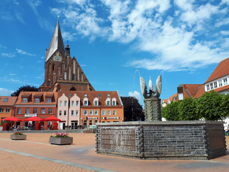 Tag 3: Vormittags waren wir in Barth. Wir haben in der Stadt einen Spaziergang gemacht und für unsere Aufgaben etwas fotografiert. Hier gibt es nicht so viele Touristen und die Gebäude hier sind ganz schön und bunt. Die gefallen mir sehr. Am Ende haben wir Fotos ausgedruckt. Nach dem Mittagessen saßen wir zusammen draußen und malten für unser gemeinsames Buch für Kunstfahrt. Ich habe mit Alessia zusammen eine Doppelseite gemalt. Dazu haben wir eine besondere Technik benutzt. Mit Klebeband, Salz und Aquarellfarben haben wir ein lustige Straße mit Häuser gemacht. Schade, dass die Lehrerinnen finden, dass unser Bild nicht zur Reise passt. Aus dem Grund haben wir am Abend mit einer besondern Technik eine Silhouette von der Barther Kirche und ein bisschen klassischen Häusern gemalt.