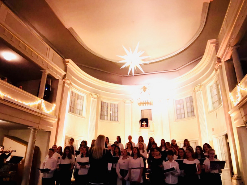 Der Advent ist eine Zeit, in der Bräuche und Traditionen eine große Rolle spielen. Das alljährliche Weihnachtskonzert des Brockhaus-Gymnasiums stellt genau solch eine Tradition dar. Dieses Jahr fand das Weihnachtskonzert am 06.12.2019 in der Gedächtniskirche Schönefeld statt und stand ganz unter dem Motto „IN DULCI JUBILO“ (lat. in süßer Freude).
