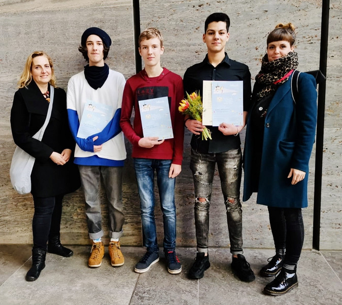 Aus mehreren hundert eingereichten Arbeiten hat es Tural Akhundov aus dem GK11 unter die diesjährigen 10 Preisträger geschafft. Sein Werk ist vor der gesamten Besucherschaft in einer Laudatio gewürdigt worden. Die Werke von Laura Gutjahr, Finn Graf und Paul Bräutigam werden ausgestellt.