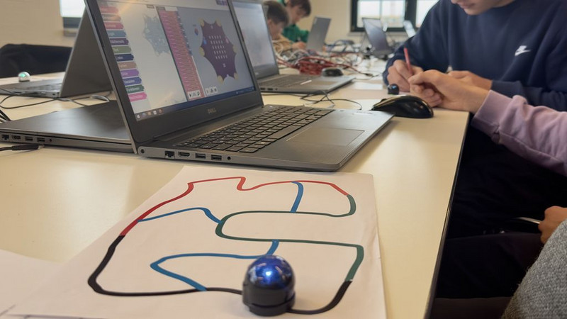 in der Gruppe zur Robotik lernten wir zwei verschiedene kleine Roboter bzw. künstliche Intelligenzen zu programmieren. Eine davon war der Calliope mini. Er wird über eine Software programmiert, mit der man die Lampen, Tasten, Lautsprecher und Mikrofone des kleinen Computers steuern kann. Der andere kleine Roboter hieß Ozobot. Diesen konnten wir ebenfalls programmieren. Er kann fahren und Farben auf dem Boden erkennen sowie von einem Programm gesteuert werden.