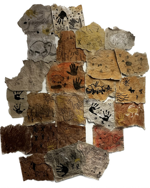 Im kunstbezogenen Teil des Projekts setzten sie ihre kreativen Fähigkeiten ein, indem sie mit Kreiden, Kohle und Farben experimentierten, um die Formsprache der Höhlenmalerei selbst nachzuempfinden.