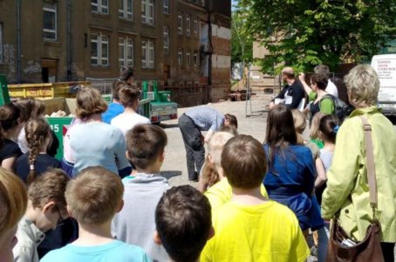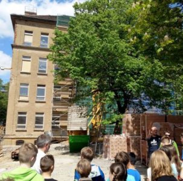 Der Architekt, Herr Fitzner, sprach kurz über die Vergangenheit der Gebäude, stellte die Planungen vor und zeigte vor Ort einige Besonderheiten. Die Schüler durften ihre vielen Fragen loswerden und gaben schon erste Ideen preis.