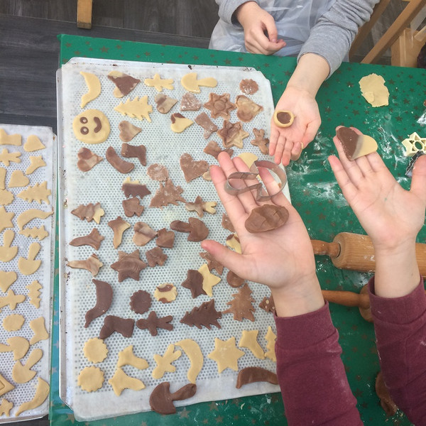 Gemeinsam wurde Plätzchenteig geknetet, gerollt und ausgestochen bis ca. 20 Bleche belegt waren. Wer noch nicht in Weihnachtsstimmung war, bei dem kam spätestens jetzt die Freude auf die bevorstehenden Festtage auf.