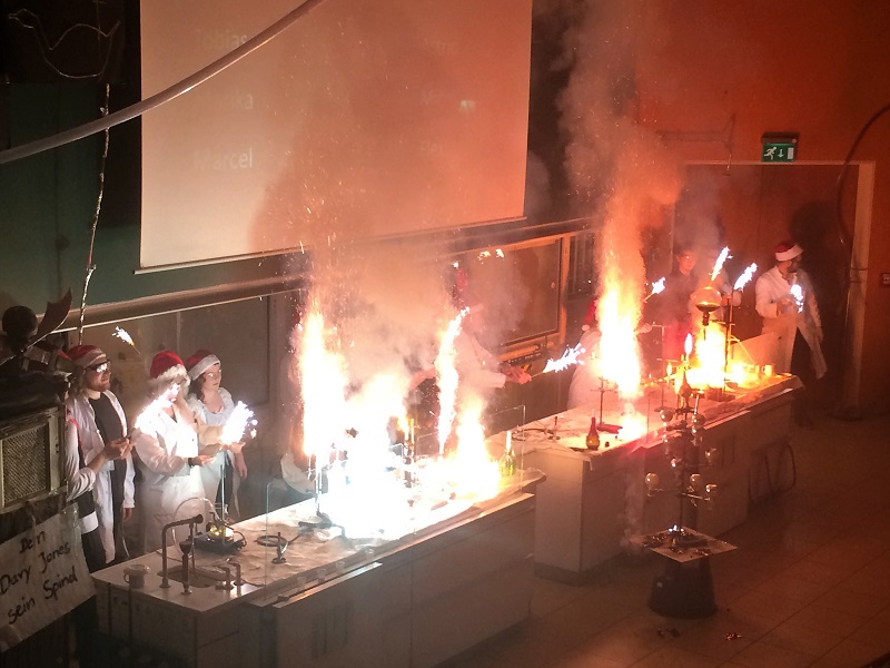 Davon konnten sich einige Schüler am Freitag, den 16.12.16, in der Weihnachtsvorlesung Chemie an der Universität Leipzig selbst überzeugen. Alle Schüler, die am Schülerwettbewerb „Chemkids“ teilgenommen hatten, erhielten die Gelegenheit das alljährliche Spektakel des Fachschaftsrates Chemie mitzuerleben.