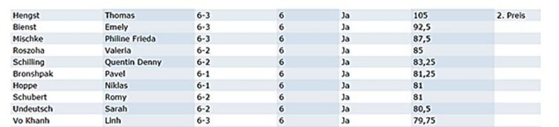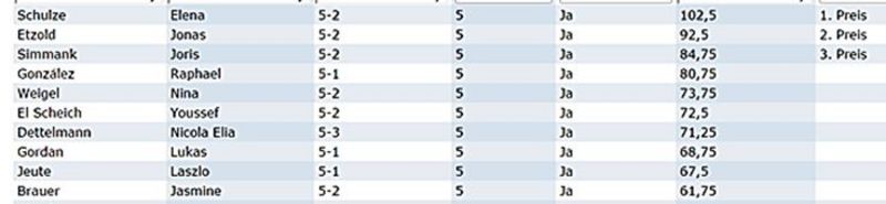 Die weiteren Ergebnisse der zehn Besten aus der jeweiligen Klassenstufe sind rechts bei den Bildern zu sehen: