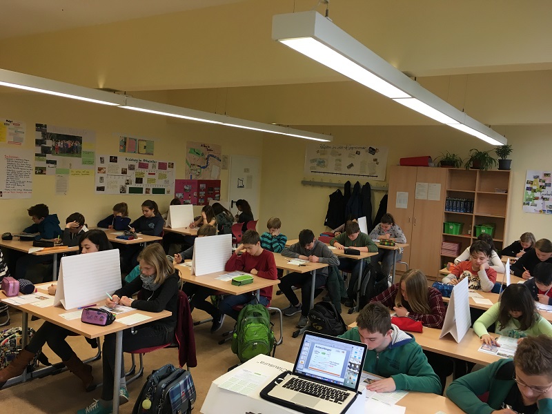 88 Schüler und Schülerinnen der Klassenstufen 5, 6 & 7 tüftelten 45 Minuten lang an 45 Aufgaben, die lexikalisches und landeskundliches Wissen, Wissen zur Aussprache, zur Grammatik, zum Leseverstehen usw. von den Kindern abverlangten.