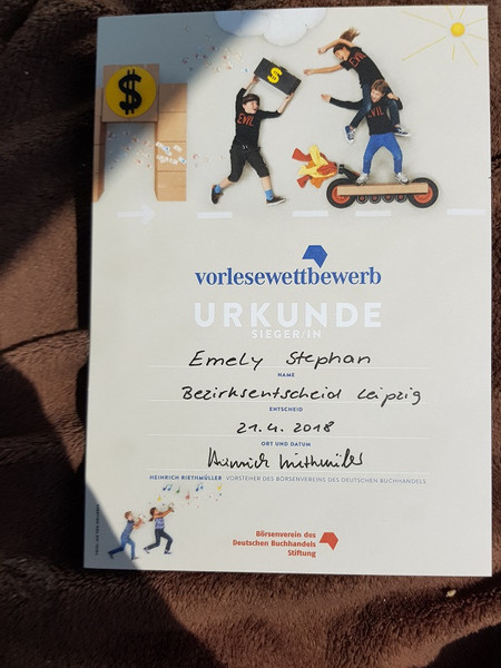 Emely Stephan aus der Klasse 6-2 hat als Siegerin den Bezirksvorlesewettbewerb absolviert.