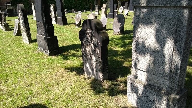 Als letztes ging es mit der proppenvollen Bahn in die Berliner Straße, genauer gesagt auf den Alten Jüdischen Friedhof. Dieser wird aber nicht mehr als Friedhof genutzt, da die Begräbnisstätte von einem Juden nicht nochmal besetzt werden darf und er schon seit 1928 voll besetzt ist.