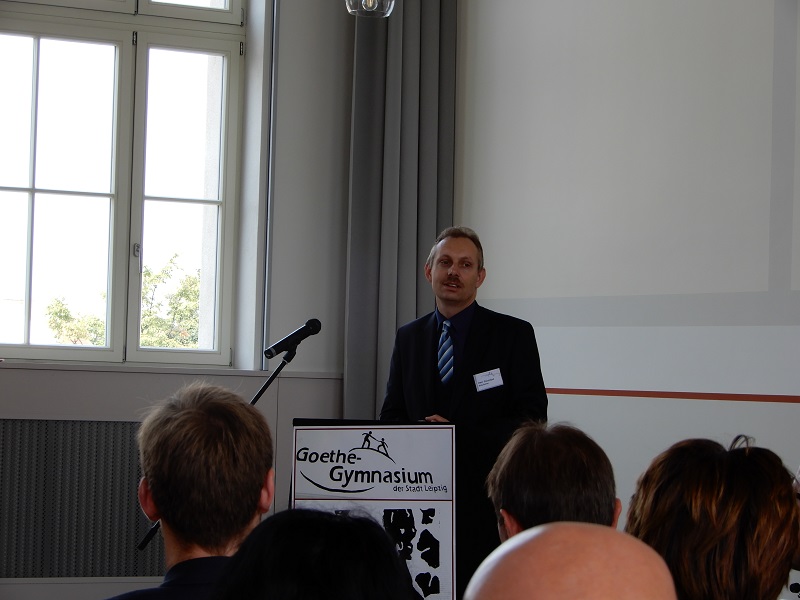Mit den vier neuen Häusern bekam die Schule natürlich auch einen neuen Namen: Goethe-Gymnasium der Stadt Leipzig. Ein Name, der bei unseren Schülern sofort sehr gut ankam und der sie stolz macht - im Prozess der Namensfindung hatte sich schnell unter Schülern, Eltern und Lehrern der Vorschlag durchgesetzt, eine Goethe-Schule zu werden. Dieser Namenspatron schien allen gut geeignet, denn er verkörpert Humanismus und die Vielfalt und Tiefe einer breiten Allgemeinbildung. Damit hat sich unsere Schule etwas sehr Anspruchsvolles „aufgebürdet“. Aber auch hier sind wir optimistisch, dass wir diesem Anspruch gerecht werden können.