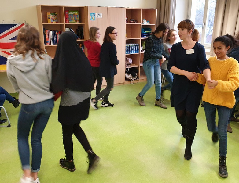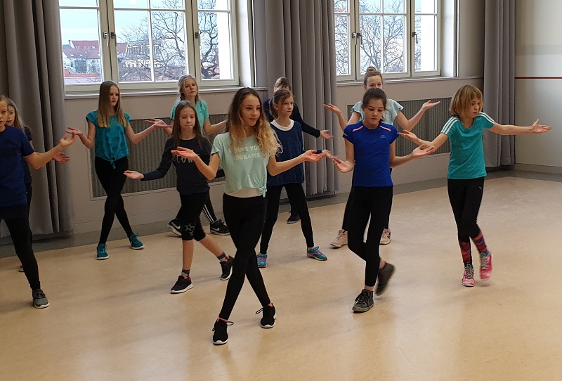 Im Anschluss daran präsentierten die Mädels der Tanzgruppe Dance4fans Choreographien, die sie im Rahmen des Ganztagsangebotes an der Tanzschule Jörgens einstudiert hatten. Nach einem tobenden Applaus als Anerkennung für die dargebotenen Tänze inklusive einer „Weltpremiere“ begaben sich die Gäste in die verschiedenen Räume und Fachkabinette, um mit Schülern und Lehrern ins Gespräch zu kommen und sich über unsere schulischen Angebote zu informieren.