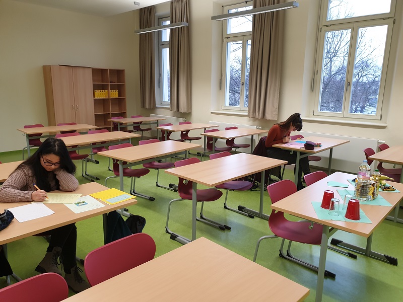 Drei Stunden lang stellten sie ihre Kompetenzen im Hörverstehen, im kreativen Schreiben, im Bereich der Lexik sowie der Landeskunde unter Beweis. Frau Eichhorst sorgte derweil für die kulinarische Unterstützung unserer Teilnehmerinnen.