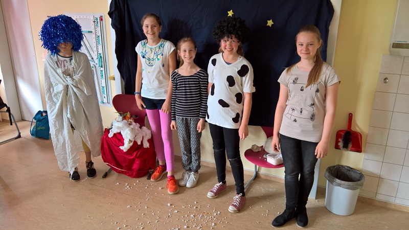 Im Ethikunterricht der Klasse 5-3 wurden heute die Schöpfungsmythen der Ägypter von vor ca. 3000 Jahren v.u.Z., der Germanen (ca. 1000 v.u.Z.) und die Schöpfungsgeschichte der Bibel nachgespielt.