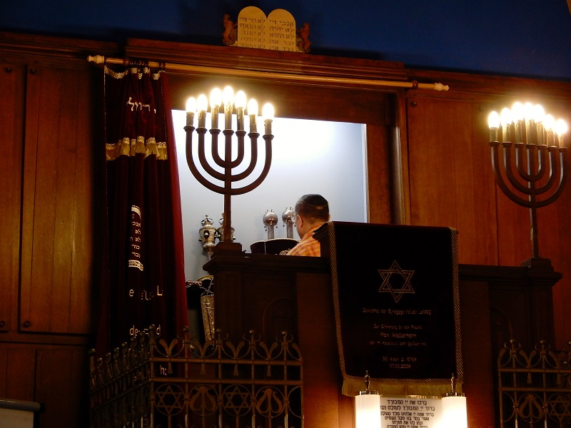 In der Synagoge erhielten wir eine Führung von Dr. Plowinski von der Ephraim Carlebach Stiftung und von dem Gemeindemitglied, Herrn Tabakmann, der ebenfalls im Auftrag der Ephraim Carlebach Stiftung arbeitet.